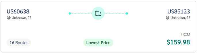 Note: The lane will always display the lowest price available across all routes, highlighting the most competitive option for the shipment.