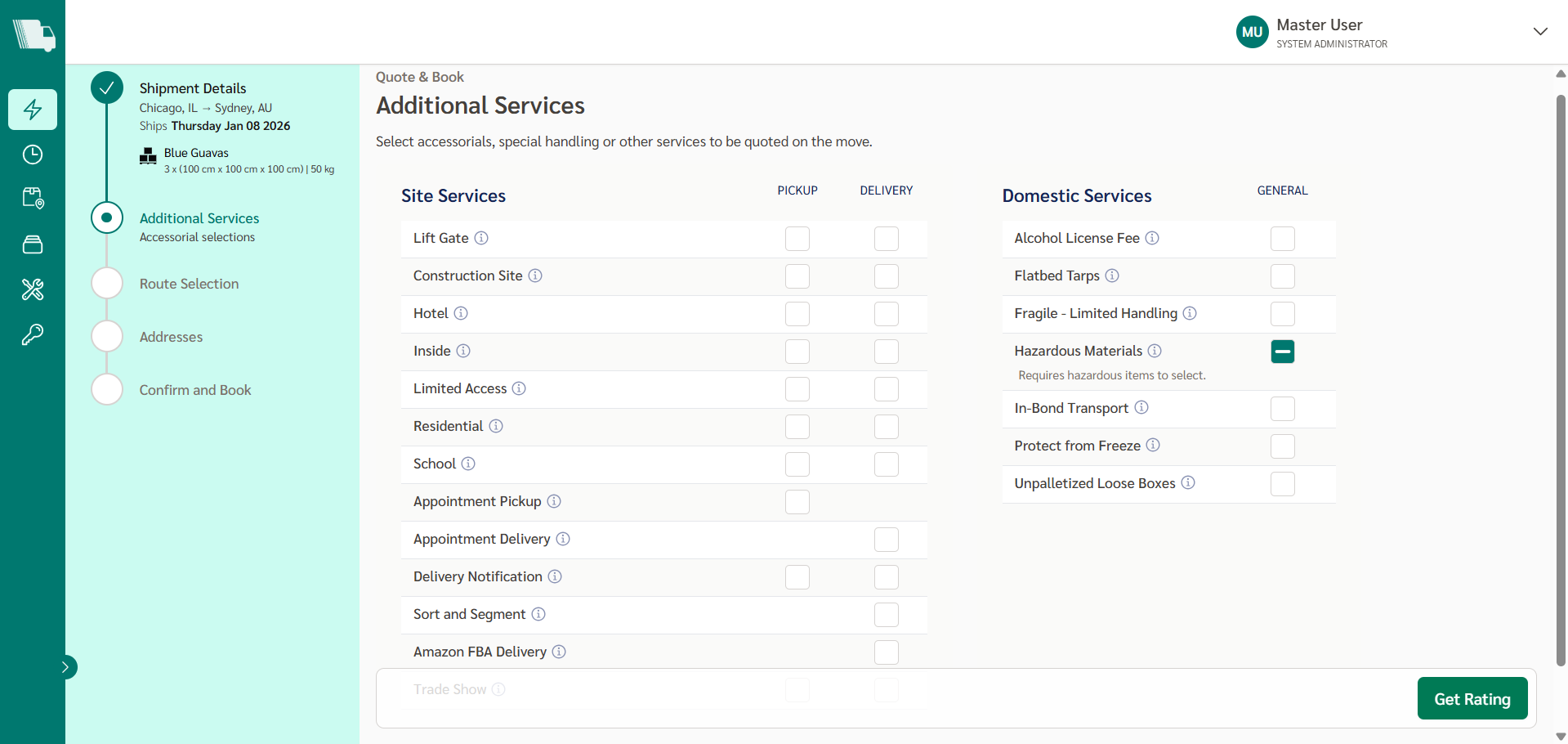 Site Services apply when the pickup or delivery location has special access requirements or operational constraints.